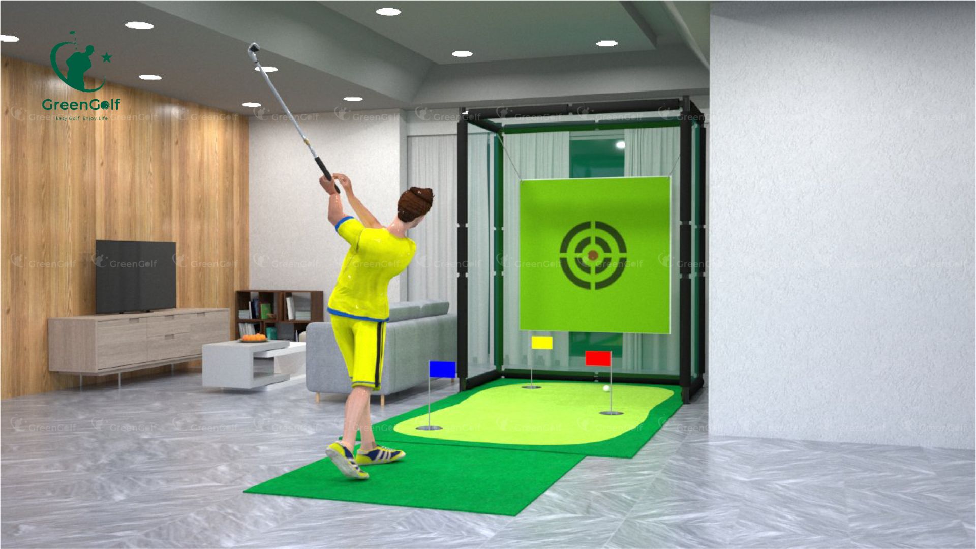 Từ sự chú trọng đến chi tiết, Greengolf đã đáp ứng mọi yêu cầu cơ bản và đáng chú ý của một sân tập golf trong nhà. Với khung thảm tập golf này, golf thủ có thể rèn luyện kỹ thuật và cải thiện sự chính xác trong môi trường thoải mái và thuận tiện của ngôi nhà mình.