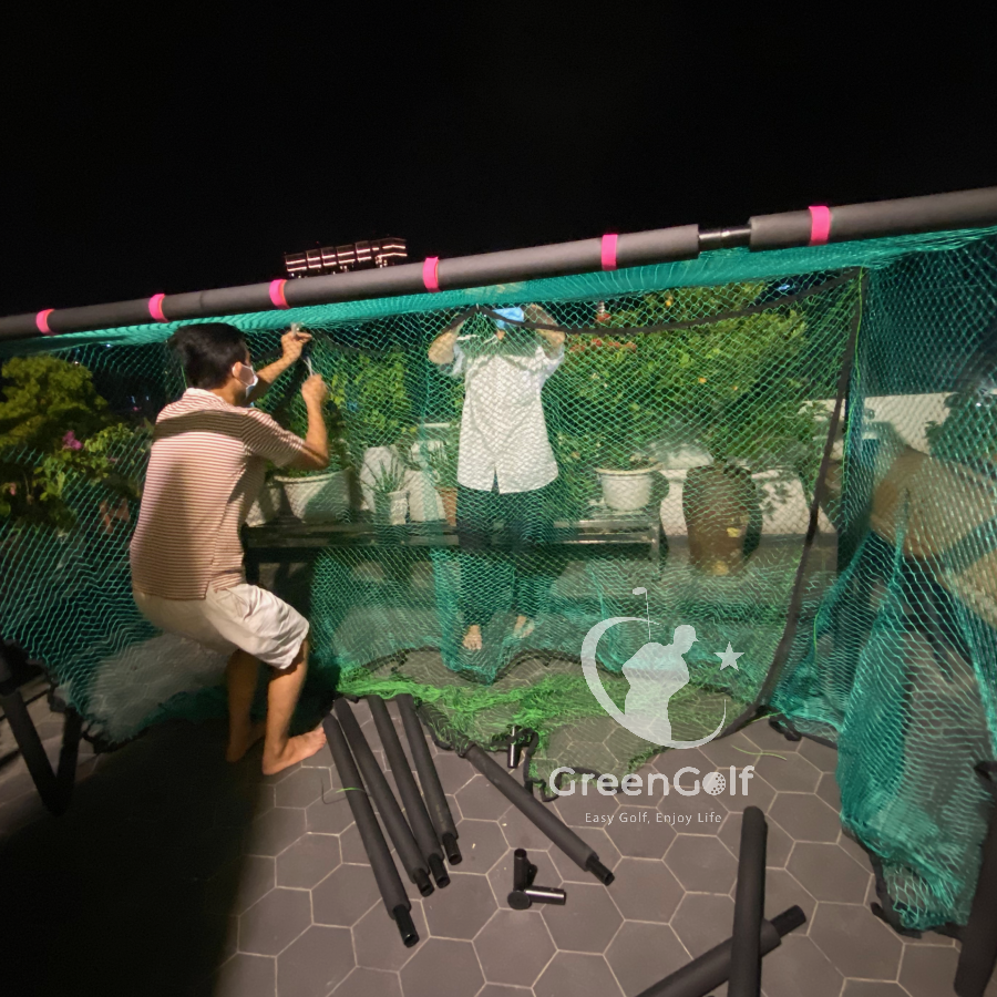 Bộ khung tập golf được lắp ráp bằng những ống thép mạ kẽm gắn với nhau bởi khẩu nối góc phi 34 cao cấp. Sau khi hoàn chỉnh khung thép thì nhân viên kỹ thuật của Green Golf sẽ lắp lưới vào khung. Bộ khung với 25 ống sắt tĩnh điện cao cấp bên ngoài được bao ôm bằng xốp cao cấp nên độ bền cao theo năm tháng. Khung chống oxi hóa tuổi thọ cao