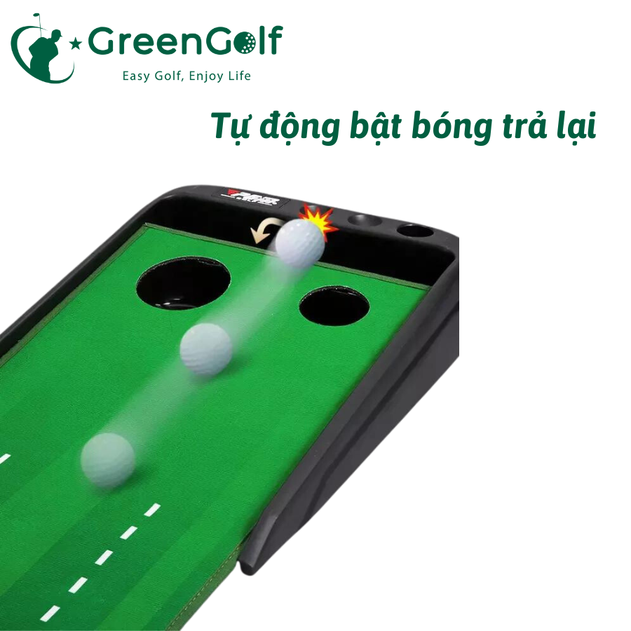 Thảm Put tự động bật bóng dành cho các Golfer bận rộn không có thời gian lên sân, giúp giải trí sau giờ làm việc căng thẳng, giải tỏa stress áp lực. Thảm tập Putting bật lại có tính di động cao khi bạn có thể dễ dàng tháo lắp gập gọn, với lớp cỏ nhân tạo cao cấp, đế và khung nhựa với màu sắc trang nhã. Luyện tập tăng cường khả năng Putting, cho phép bạn tận hưởng niềm vui chơi Golf thực sự ở mọi lúc mọi nơi : Sân Golf mini tại nhà, văn phòng, khu vui chơi,...Nhắc đến các thiết bị golf, thì putting golf nhựa là một sản phẩm không thể thiếu trong sổ tay của các golfer chuyên nghiệp, hay người mới chơi golf.